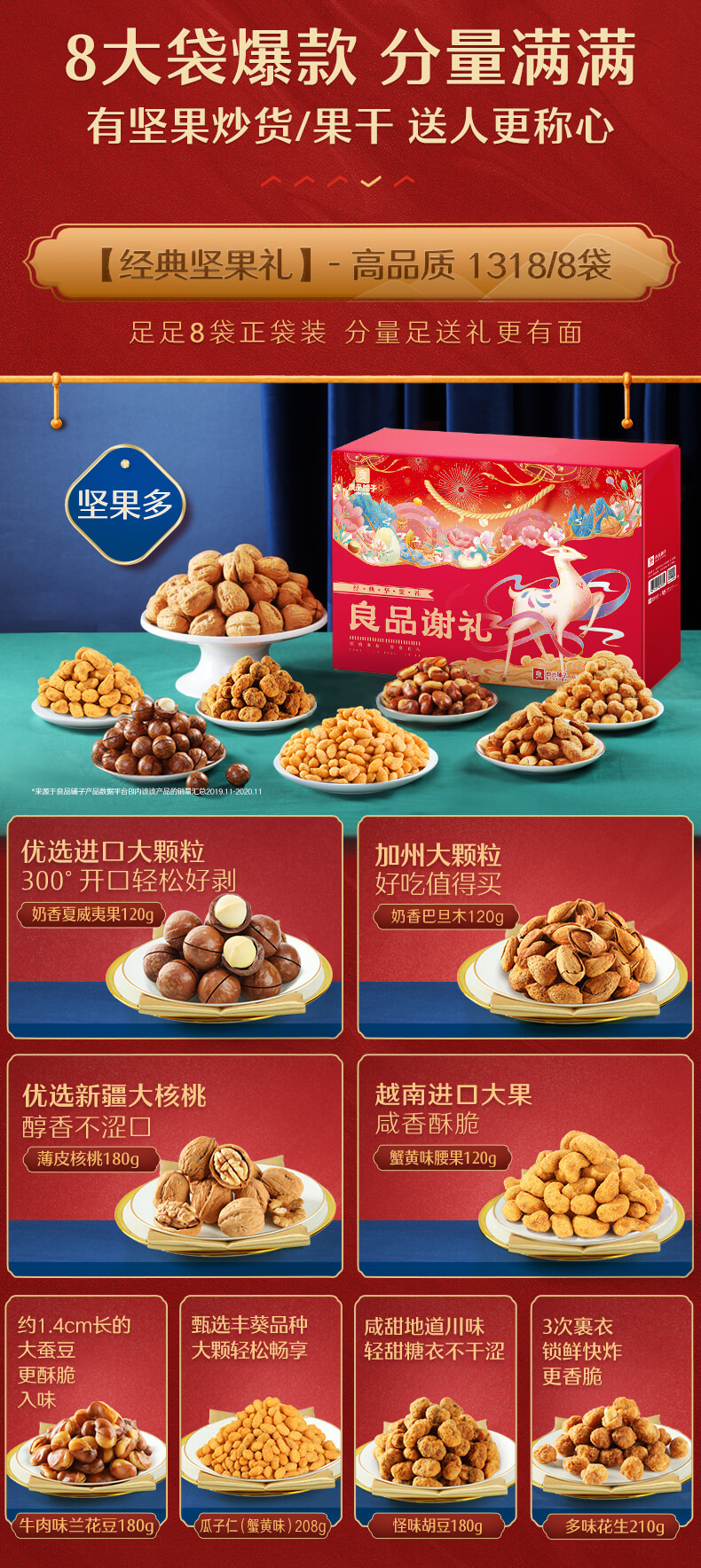 [史上底价]良品铺子坚果礼盒坚果大礼包1468g/8袋到手价44元包邮