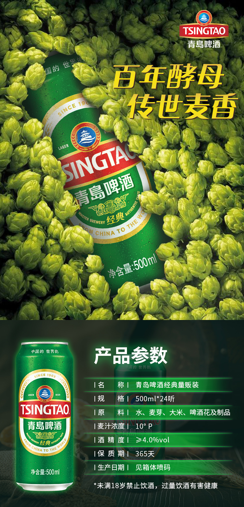 青岛啤酒聚惠经典 10 度 3.3 元 / 听探底另外再送12听菠萝啤
